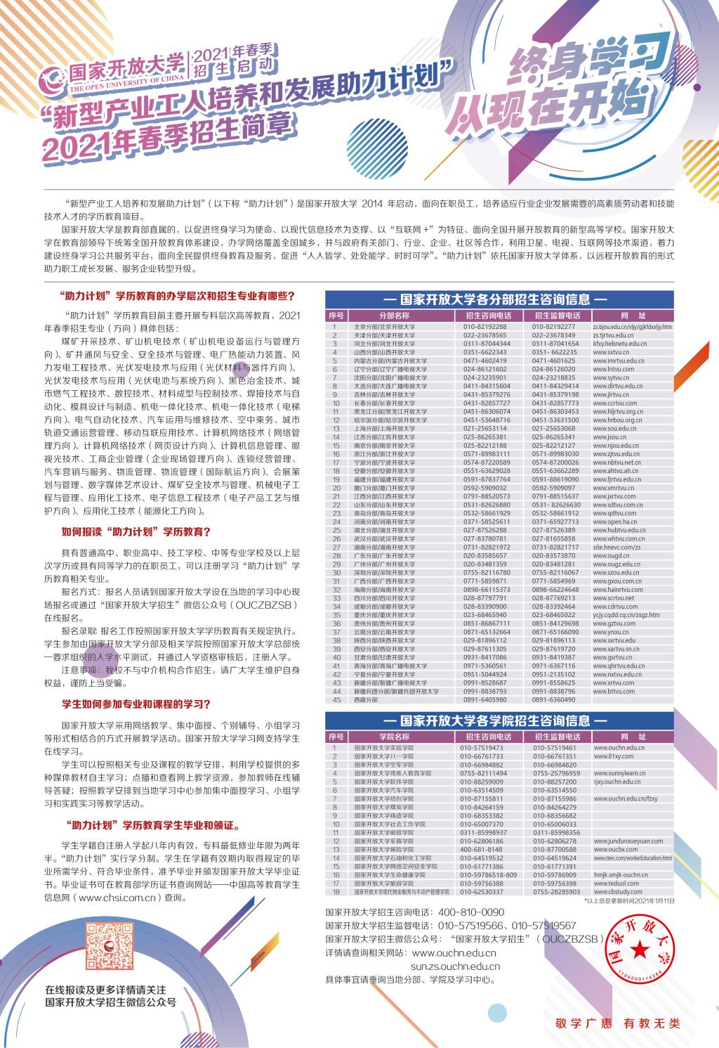 国家开放大学“新型产业工人培养和发展助力计划“2021年春季招生简章